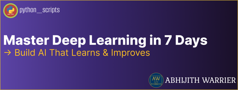 The 7-Day Deep Learning Bootcamp by Abhijith Warrier (@python_scripts) is designed for creators, developers & curious minds who want to build AI from scratch β practical, step-by-step, and project-driven.